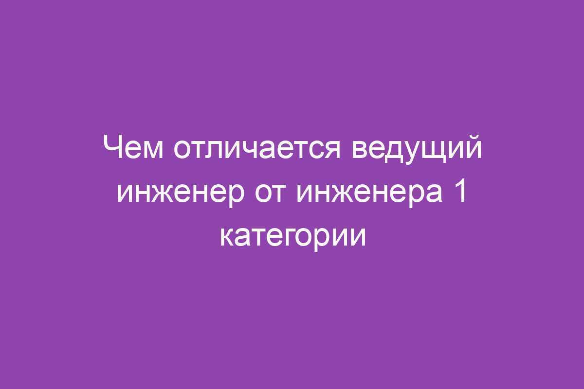 Чем отличается ведущий инженер от инженера 1 категории
