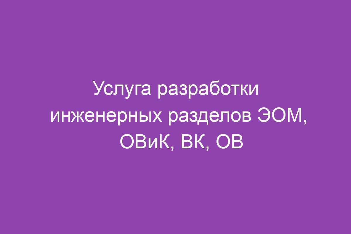 Услуга разработки инженерных разделов ЭОМ, ОВиК, ВК, ОВ